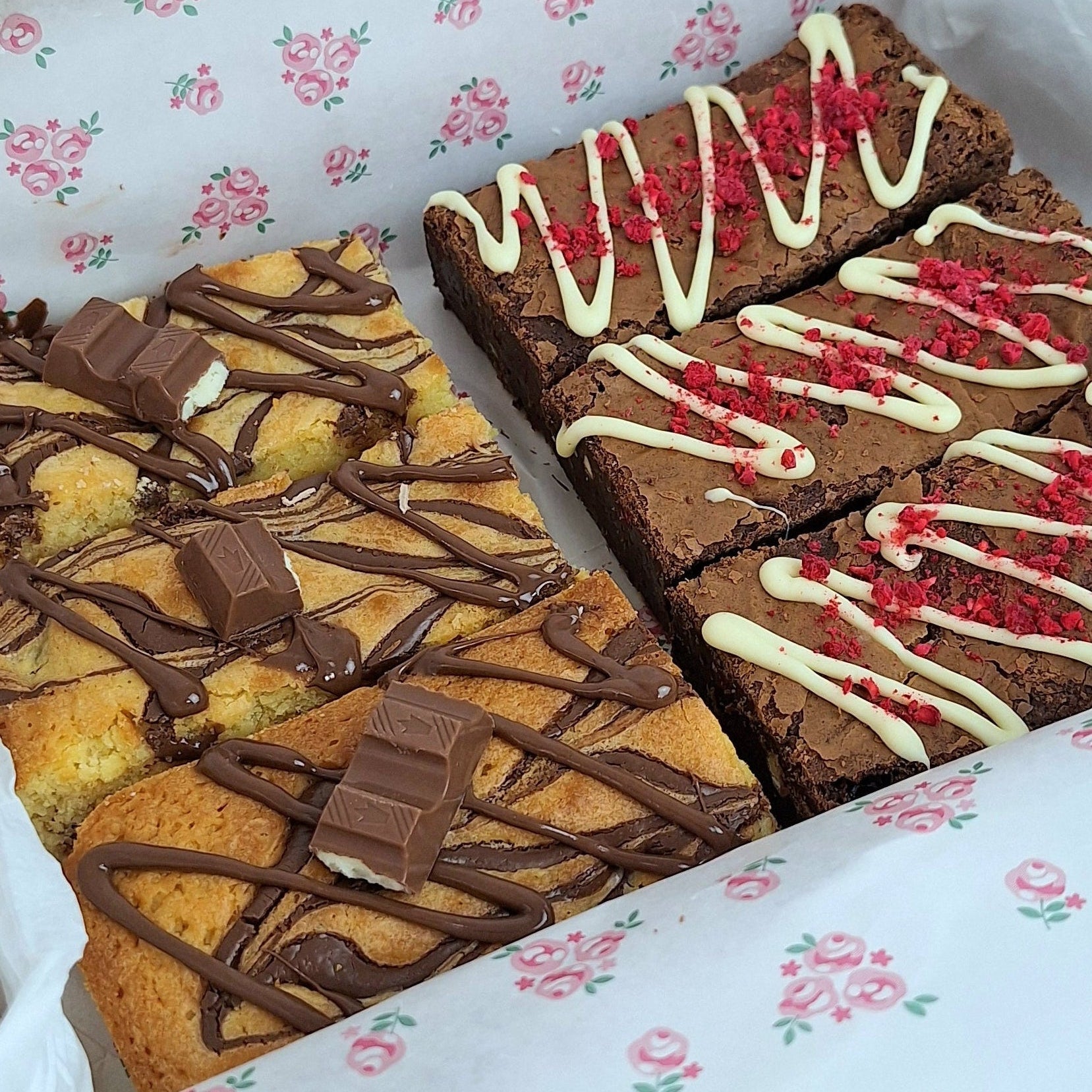 - 3 x Chocolate raspberry brownies (a mix of milk & dark chocolate), with white chocolate chips